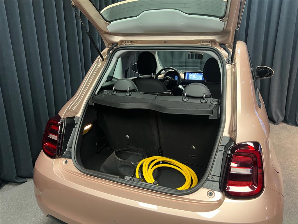 Fiat 500e 42 kWh har en rækkevidde ved blandet kørsel på op til 312 kilometer (WLTP) og på farten kan bilen hurtiglades fra 10–80% på ca. 25 minutter.