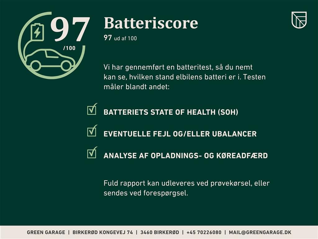 Vi har naturligvis testet bilens batteri for at sikre ydeevne og sundhed. Du kan se resultatet i billedserien.